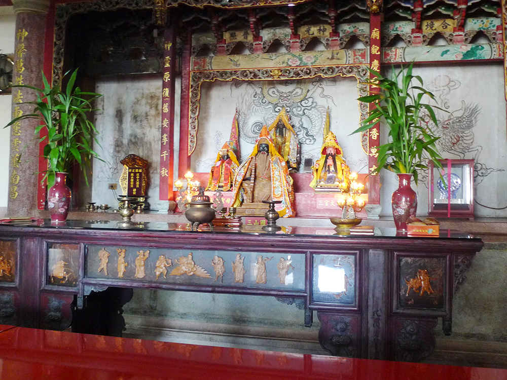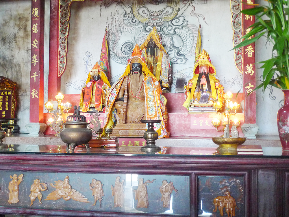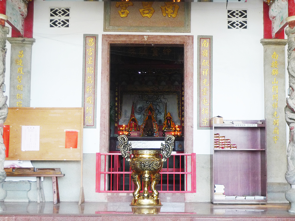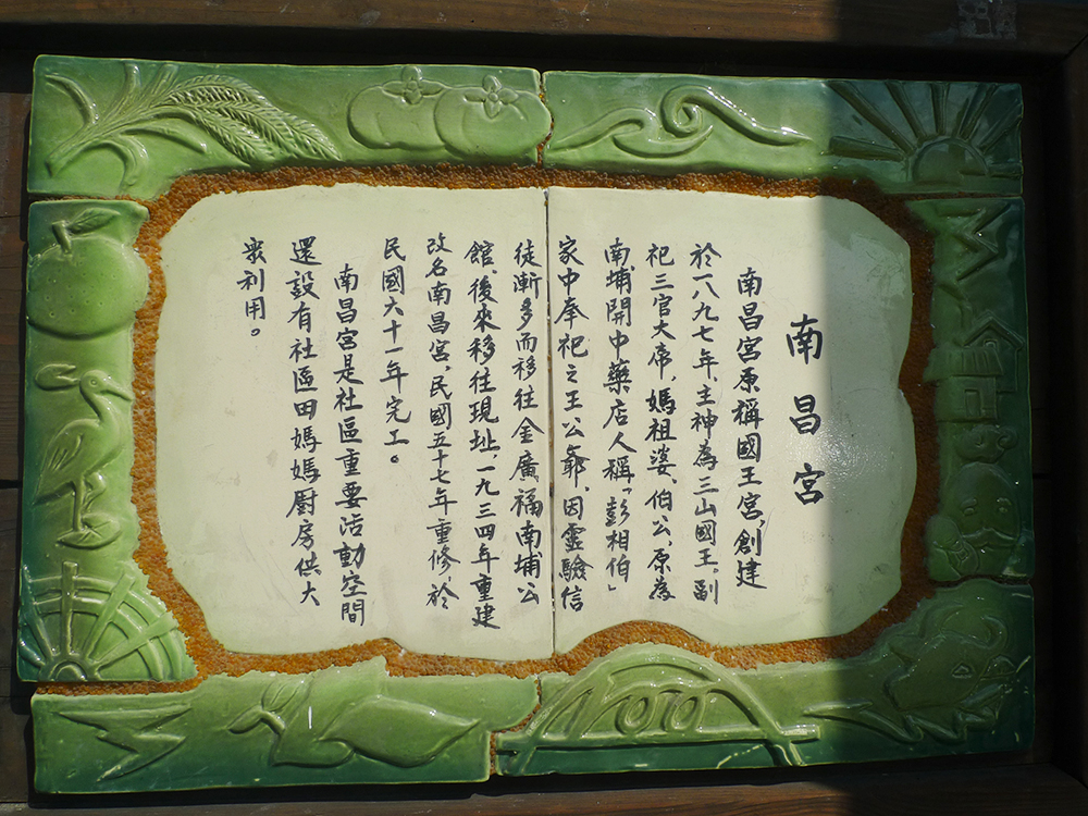 The main god enshrined in Nanchang Palace in Nanpu Township is the Sanshan God, or King of Three Mountains. The King of Three Mountains refer to the three mountain gods of Jinshan, Mingshan, and Dushan in Chaozhou Prefecture, Guangdong Province. They are beliefs originated in Guangdong, China. When the Hakka moved to Taiwan, most of them chose the King of the Three Mountains, Goddess of Mercy, and Mazupo as their guardians. When they first came to Taiwan, they worshipped the guardians at home. After the economic situation improved, they built temples. The King of Three Mountains in Nanchang Palace was originally enshrined in the home of Peng Xiangbo, who opened a Chinese medicine shop in Nanpu. When Nanpu was reclaimed, some aborigines practiced beheading as a form of battle. One day, Wan Ye came to Peng Xiangbo in a dream, telling him when beheading would be practiced in Nanpu. Knowing it, everyone hid somewhere until aborigines left, and all of them survived. Because of this incident, the number of believers increased and they moved to Jinguangfu Nanpu Mansion to worship, which became the Nanchang Palace as we know today.