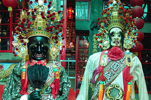 The seventh master is also known as General Xie, commonly known as Xie Bi'an, and the eighth master is also known as General Fan, commonly known as Fan Wusheng. General Xie is one foot four tall and General Fan is five feet tall. Legend has it that they were all from Min County, Fujian, and they had been brothers since childhood, and one day they went out to Nantai Bridge, the day is about to rain, the seventh master asked the eighth master to wait for him to go home to get the umbrella, but unexpectedly, after a while, the heavy rain poured into the basin, the river rose violently, the eighth master abided by the agreement, so he was unwilling to leave the bridge. However, because of his short stature, he was drowned in the water. When the seventh master took the umbrella to rush, the eighth master had been swept away by the flood, the seventh master was in great pain so that he threw himself into the river. Unexpectedly, he couldn’t end his life in the river because his stature is too tall. As a consequence, he hung himself under a tree near the river. After the Emperor learned about this touching story, he sent them to be the subordinates of the Chenghuang Lord, and take the responsibilities for arresting Yang Shi as a traitor to accept the trial of the Chenghuang Lord.
