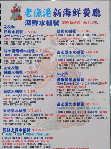 Old Fishing Harbor New Seafood Restaurant: Introduction: Nanliao Fishing Harbor Seafood Restaurant is known for its fresh seafood, located by the fishing harbor. Customers can enjoy delicious food while admiring the charming sea view. The elegant environment is perfect for family gatherings and friends' get-togethers. The location is in Nanliao Fishing Harbor, Hsinchu County, Hsinchu City, Taiwan. Business hours are from 10:30 AM to 9:00 PM. The menu includes sashimi platters, garlic grilled shrimp, steamed crab, seafood risotto, fried calamari rings, and other delicious dishes. The staff is warm and friendly, happy to provide professional menu recommendations, and the restaurant also offers reservation services.