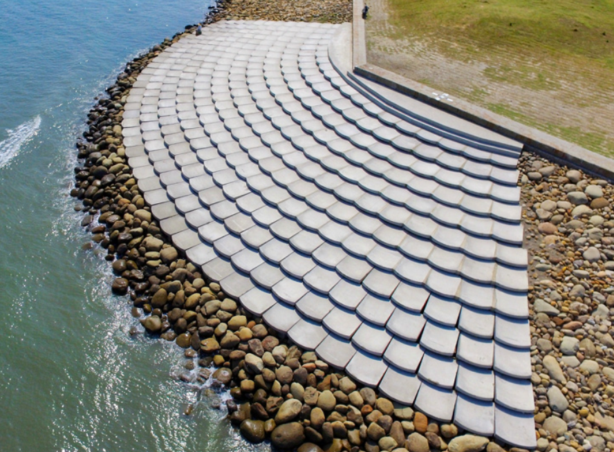 The Nanliao Fish Scale Ladder is located at Nanliao Fishing Harbor in the North District of Hsinchu City. It is a public facility that combines functionality and aesthetics, and has become a popular tourist attraction in recent years. The structure uses an innovative fish scale design to replace traditional wave breakers, successfully integrating wave-breaking functions with landscape design, showcasing the aesthetics of modern coastal engineering. The Fish Scale Ladder extends like the sea, blending with the blue ocean and sky to create a magnificent visual effect, attracting many tourists to admire and photograph it. It is open all year round, offering different charming views whether in the morning light at sunrise or the warm afterglow at sunset. In addition, the area around the Fish Scale Ladder is rich in diverse tourism resources, including the 17-kilometer coastline and the Boguang Market, making it suitable for a rich one-day tour. Visitors can also enjoy fresh seafood at Nanliao Fishing Harbor, savoring the local culture and specialties. The Nanliao Fish Scale Ladder is not only an important leisure space but also embodies the modern city's pursuit and balance of ecology, functionality, and aesthetics.